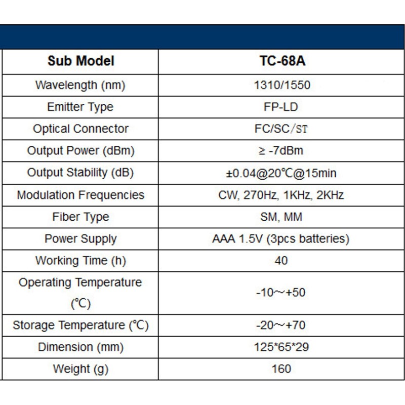 Der Tester zur Prüfung von optischem Licht Spacetronik SP-OSM32 Mini zeichnet sich durch fortschrittliche Steuerungstechnologie, hohe Ausgangsleistung und sehr geringen Energieverbrauch aus. Er kann bei 1550 nm, 1490 nm, 1310 nm, 1300 nm, 850 nm sowie bei Einzel-, Doppel- oder Dreifachwellenlängen betrieben werden. Er kann verschiedene Modulationsfrequenzen (CW, 270 Hz, 1 kHz, 2 kHz) ausgeben. Ein Messgerät dieser Art kann in der optischen Kommunikation, bei optischen Messungen, zur Erkennung von Glasfasern und für andere Anwendungen weitreichend eingesetzt werden.