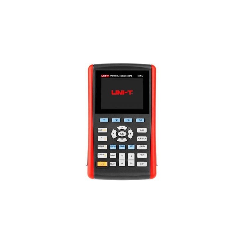Das UTD1025CL ist ein digitales Taschenoszilloskop mit 25 MHz und Multimeter in einem. Ein Vorteil des Geräts ist das kontrastreiche Farb-LCD-Display. Dank einer Anzeigeauflösung von 3999 sind Messungen in einem breiten Spannungsbereich – bis zu 200 V/Teilstrich – sowie von Stromstärke, Widerstand, Dioden, Kapazität und Durchgangsprüfung möglich. Die Funktionalität des Geräts wird zudem durch die einzigartige Aufzeichnung von Messkurven sowie deren Speicherung und Abruf erweitert. Der am Gehäuse angebrachte USB-Anschluss ermöglicht die Verbindung des Geräts mit einem Computer. Das Gerät zeichnet sich außerdem durch ein einzigartiges und einfaches Auto-Setup sowie eine intelligente Software aus. Der eingebaute Akku garantiert 8 Stunden ununterbrochenen Betrieb, der auch nach dem Anschließen des Geräts an das Netzteil fortgesetzt werden kann.