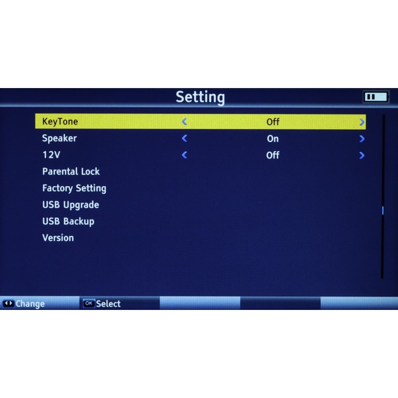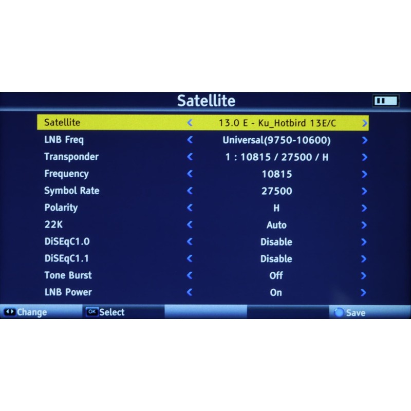 • Unterstützung von DiSEqC: 1.0, 1.1, 1.2, 0/22 kHz Tone, Unicable (dSCR), Wideband