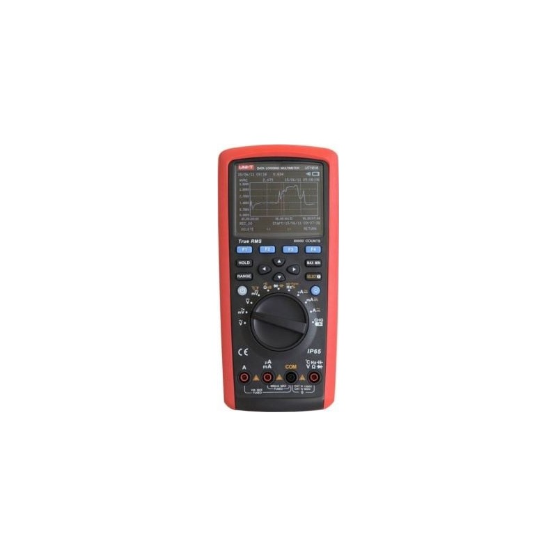 Das UT181A ist ein universelles Digitalmessgerät mit TRUE-RMS-Funktion und einem farbigen 4,5-stelligen Display, das die Darstellung von Zeitverlaufsdiagrammen ermöglicht. Das Gerät ermöglicht schnelle Messungen aller grundlegenden elektrischen Größen und speichert bis zu 20.000 Messwerte. Zudem lassen sich die Daten ganz einfach über ein USB-Kabel auf einen Computer übertragen. Das Messgerät UT181A kann sicher in jeder Werkstatt eingesetzt werden. Dank der Schutzart IP65 ist das Gerät unempfindlich gegen Wassereinwirkung sowie gegen das Eindringen von Staub und Schmutz. MESSBEREICHE Gleichspannung DC: 60 mV/600 mV/6 V/60 V/600 V/1000 V ±(0,025 % + 5) Wechselspannung AC: 60 mV/600 mV/6 V/60 V/600 V/1000 V ±(0,3 % + 30) Gleichstromstärke DC: 600 µA/6000 µA/60 mA/600 mA/10 A ±(0,08 % + 10) Wechselstromstärke AC: 600 µA/6000 µA/60 mA/600 mA/10 A ±(0,6 % + 20) Widerstand: 600 Ohm/6 kOhm/60 kOhm/600 kOhm/6 MOhm/60 MOhm ±(0,05 % + 2) Leitfähigkeit: 60 nS ±(2 % + 10) Kapazität: 6 nF/60 nF/600 nF/6 µF/60 µF/600 µF/6 mF/60 mF ±(2 % + 5) Frequenz: 60 Hz / 600 Hz / 6 kHz / 60 kHz / 600 kHz / 6 MHz / 60 MHz ±(0,01 % + 5) Temperatur: -40 °C ~ 1000 °C ±(1 % + 30), -40 °F ~ 1832 °F ±(1,5 %+50) Tastverhältnis: 10 % ~ 90 % ±(1,2 %+30) Impulsbreite: 250 ms Diodentest: ca. 3 V Durchgangsprüfung ZUSÄTZLICHE FUNKTIONEN Automatische / manuelle Umschaltung der Messbereiche True-RMS-Messung AC- und DC-Messung Gleichzeitige Temperaturmessung mit zwei Sonden Vergleichsmessungen Tiefpassfilter: 1 kHz (-3 dB) Einfrieren des letzten Messwerts Messung von Spannungspegeln (dBV/dBm) Speicherung von Spitzenwerten Relativmessmodus Speicherung von Messwerten: 20.000 Trendeinstellungen Speicherung von MAX/MIN/AVG-Werten Anzeige von Datum/Uhrzeit Einstellung der LCD-Hintergrundbeleuchtung Analoge Balkenanzeige: 61 Segmente Warnung bei falsch gewählten Messbuchsen Anzeige für niedrigen Batteriestand Automatische Abschaltung Maximaler Messwert: 60.000 ALLGEMEINE MERKMALE Optischer Anschluss Eingangsimpedanz bei Spannungsmessung: ca. 10 MΩ Stromversorgung: Lithium-Ionen-Akku 7,4 V, 2200 mAh Displaygröße: 3,5”, farbiges TFT-LCD Produktabmessungen: 103 x 225 x 59 mm Produktgewicht: 638,6 g Zubehör: Akku, Messleitungen, USB-Kabel, 2x Temperaturmesssonde, Temperaturmessbuchse, Ladebuchse, Netzteil, Tragetasche