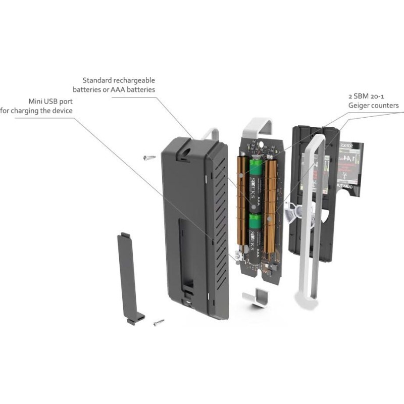 Das Soeks Quantum ist ein professionelles Dosimeter mit zwei Geiger-Müller-Röhren vom Typ SBM 20-1. Dies gewährleistet eine hohe Messgenauigkeit und erleichtert die Lokalisierung der Strahlungsquelle. Das Messgerät ist für die Messung ionisierender Strahlung – Gamma- und Betastrahlung – ausgelegt. Das Gerät kann die aufgenommene Strahlungsdosis sowie die Hintergrundstrahlung messen. Im Batteriebetrieb hält es bis zu 700 Stunden (AAA-Batterien oder Akkus).