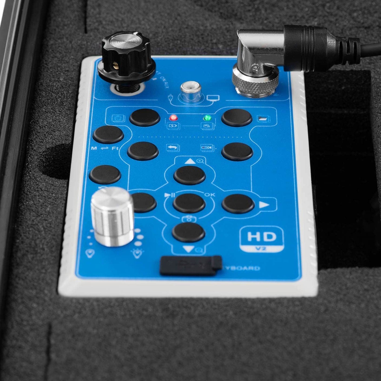 Die Endoskopkamera wird mit einem Akku betrieben, sodass Sie sie überall einsetzen können, ohne sie an eine externe Stromquelle anschließen zu müssen. Alles lässt sich in einem robusten Transportkoffer verstauen.