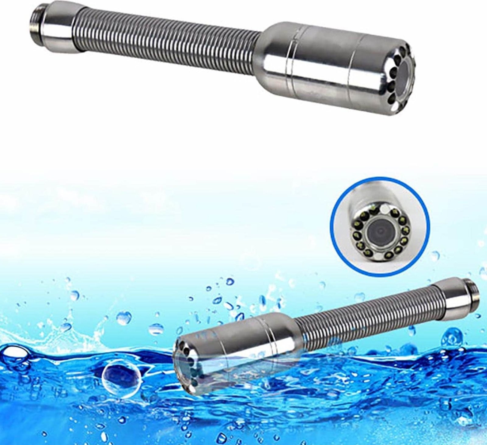 Der Kamerakopf wird mithilfe einer 30 m langen Sonde aus Glasfaser in das Rohr eingeführt. Die Kanalinspektionskamera eignet sich für Abflüsse mit unterschiedlichen Durchmessern. Zwei Führungskufen in unterschiedlichen Größen passen die Kamera an den Rohrdurchmesser an. Der Kamerakopf und die Sonde sind wasserdicht (IP68) und können daher auch in feuchter Umgebung eingesetzt werden. In der Rohrleitung lässt sich das Kabel problemlos auf dem gewünschten Weg führen.