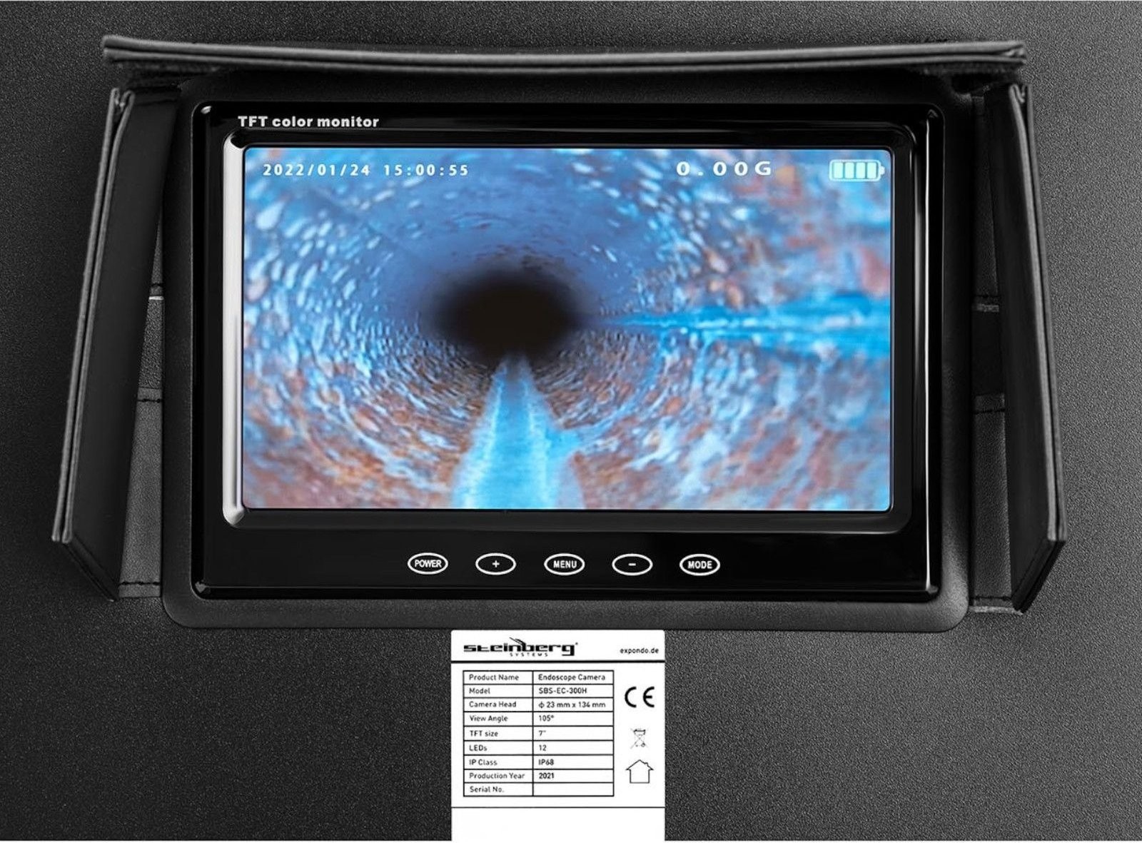 Steinberg HD-Inspektionsendoskop, 30 m lange Sonde, LED, 7-Zoll-TFT-Farbdisplay HD-Inspektionsendoskop, 30 m lange Sonde, LED