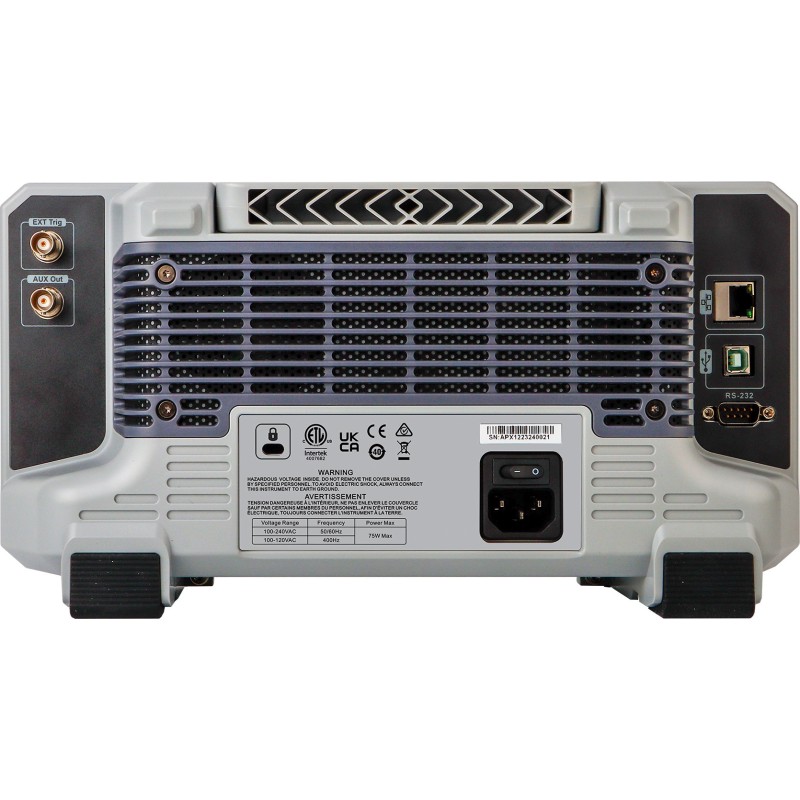 Schnittstellen: USB-Host, USB-Device, LAN, EXT Trig, AUX (Trig Out, Pass/Fail, DVM)