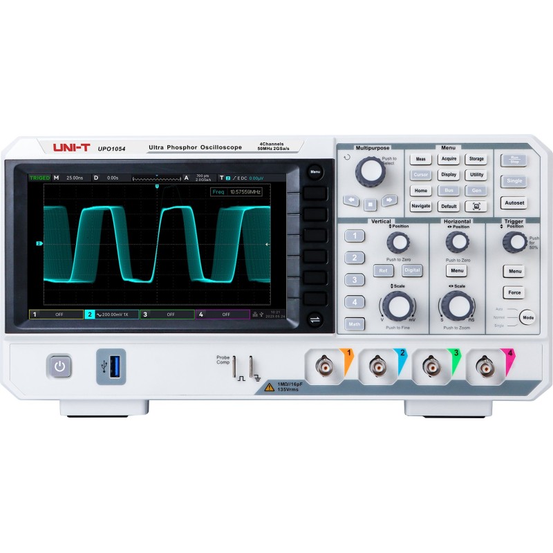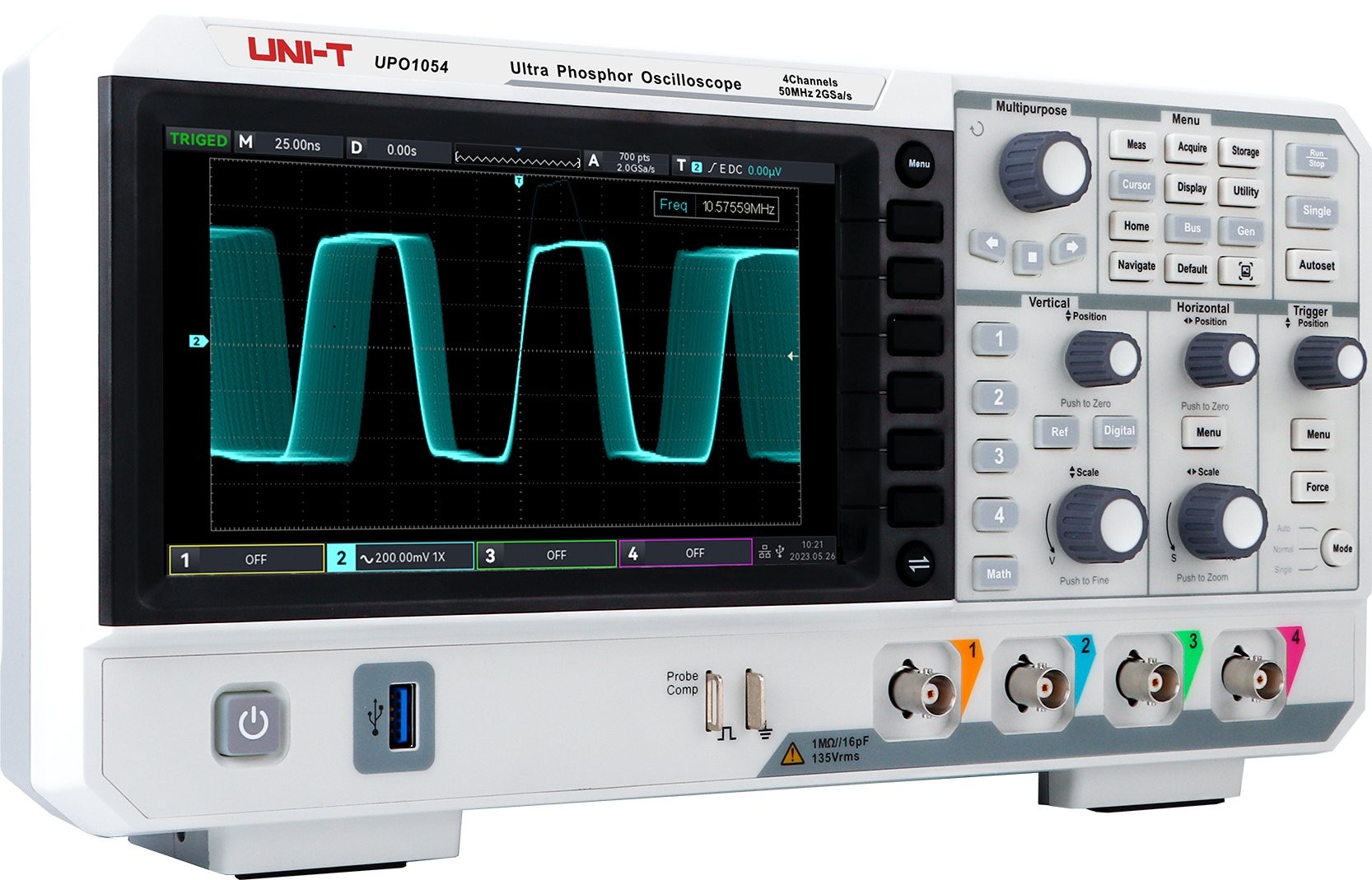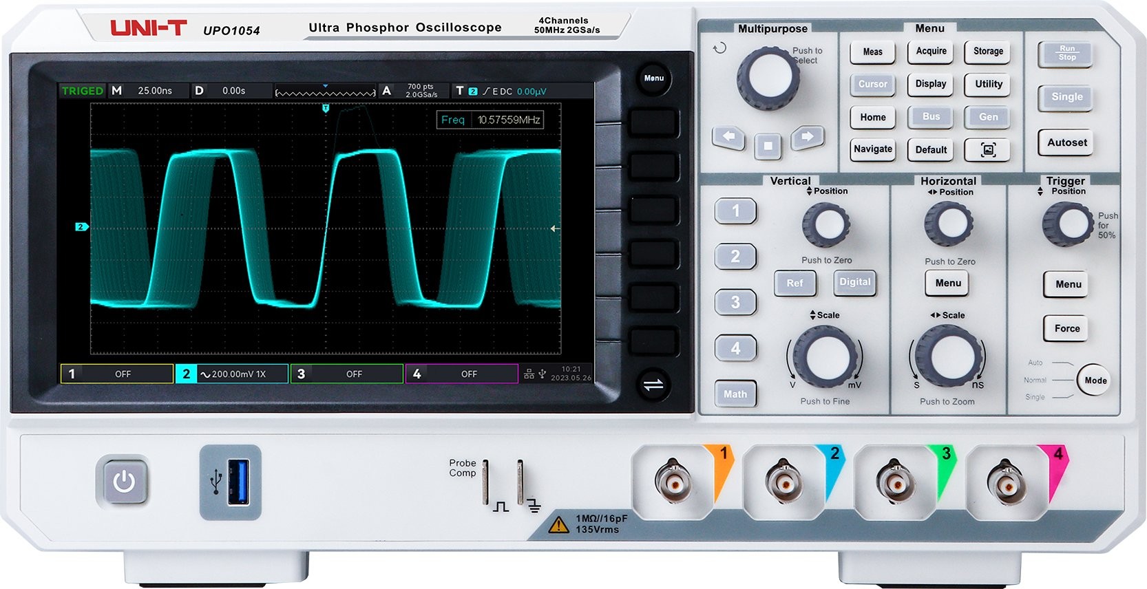 Funktionen Automatische Messung von 27 Parametern: Peak-Peak, Amplitude, Maximum, Minimum, Top, Bottom, Mean, Middle, Cycle Mean, RMS, Cycle RMS, Area, Zyklusfläche, Überschwingen, Vorlauf, Frequenz, Zyklus, Anstiegszeit, Abfallzeit, positiver Impuls, negativer Impuls, positives Tastverhältnis, negatives Tastverhältnis, Verzögerung A->B (steigende Flanke), Verzögerung A->B (fallende Flanke), Verzögerung B->A (steigende Flanke), Verzögerung B->A (fallende Flanke).