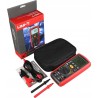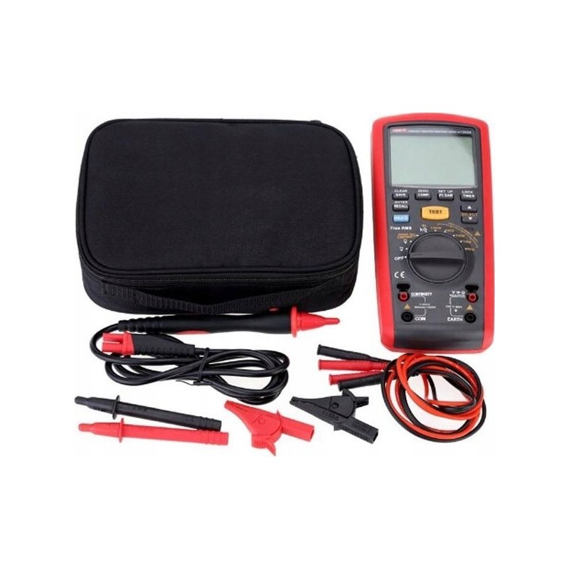Das Messgerät UT505B verfügt über ein großes, hintergrundbeleuchtetes LCD-Display mit Bargraph (ein zusätzliches Element auf dem Display ist ein 30-Punkte-Balken, der die Ausschlagbewegung der Messanzeige analog zu analogen Messgeräten simuliert). Das Gehäuse besteht aus strapazierfähigem Kunststoff. Das Messgerät zeichnet sich durch hohe Genauigkeit und Stabilität aus. Dank seiner handlichen Abmessungen, der Batteriebetrieb und der intuitiven Bedienung eignet sich dieses Gerät ideal für den Einsatz unter allen Bedingungen. Im Lieferumfang des Messgeräts UT505B ist eine praktische Tragetasche enthalten, in der das gesamte Messset Platz findet.