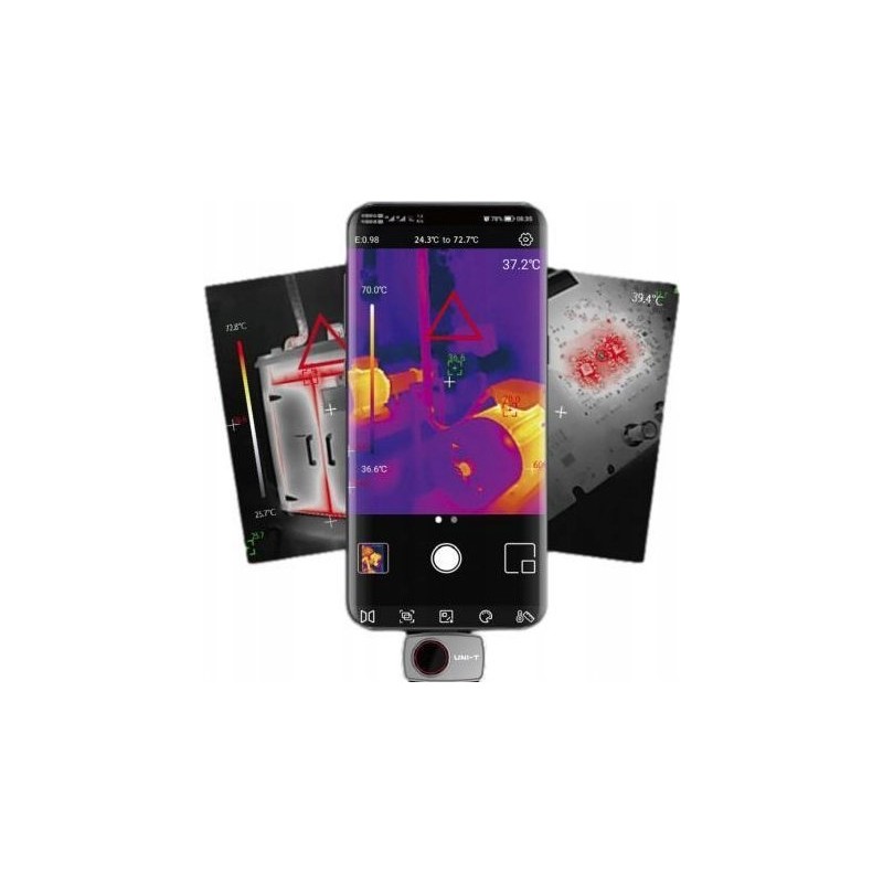 Die IR-Auflösung von 256×192 sorgt für klare Bilder und eine schnelle Reaktion. Die UTi720M verfügt über einen breiten Temperaturmessbereich von -20 °C bis 200 °C. Mit dieser Wärmebildkamera können Anwender Probleme mit Klimaanlagen einfacher und schneller beheben, Wärmeprobleme im Haus untersuchen und versteckte Mängel aufdecken. Sie ist ein hervorragendes Werkzeug für Heimwerker, Outdoor-Sportler, Ingenieure, Handwerker und Bauunternehmer usw.