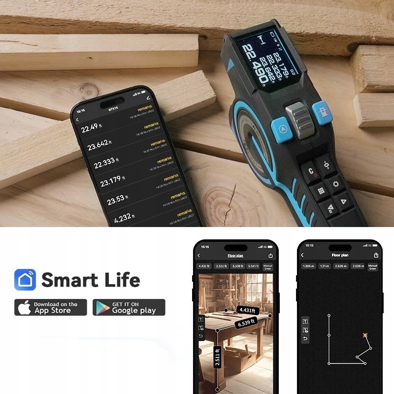 ENTFERNUNGSMESSER DIGITALER MESSSTAB BLUETOOTH-APP SMART LIFE PLANUNG PER HANDY