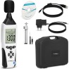 – Dezibelmesser, - Mikrofonabdeckung, - 9-V-Batterie, - Stativ, - 3,5-mm-Kopfhörerbuchse, - USB-Kabel, - Netzteil, - Windows-kompatible Software (CD), - Kalibrierschraubendreher, - Tragetasche, - Bedienungsanleitung.