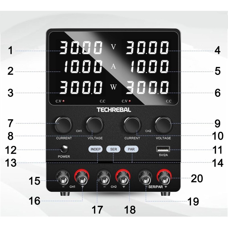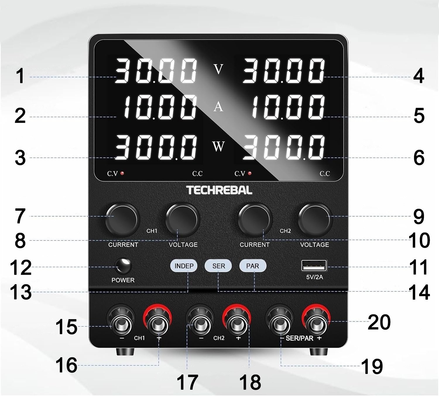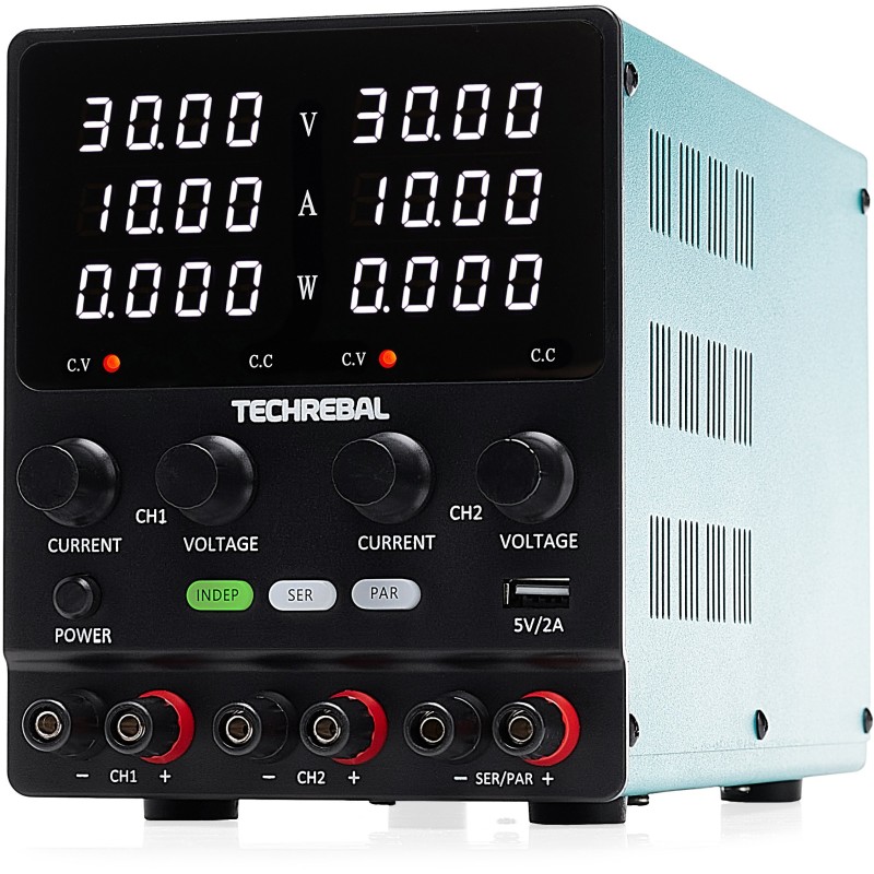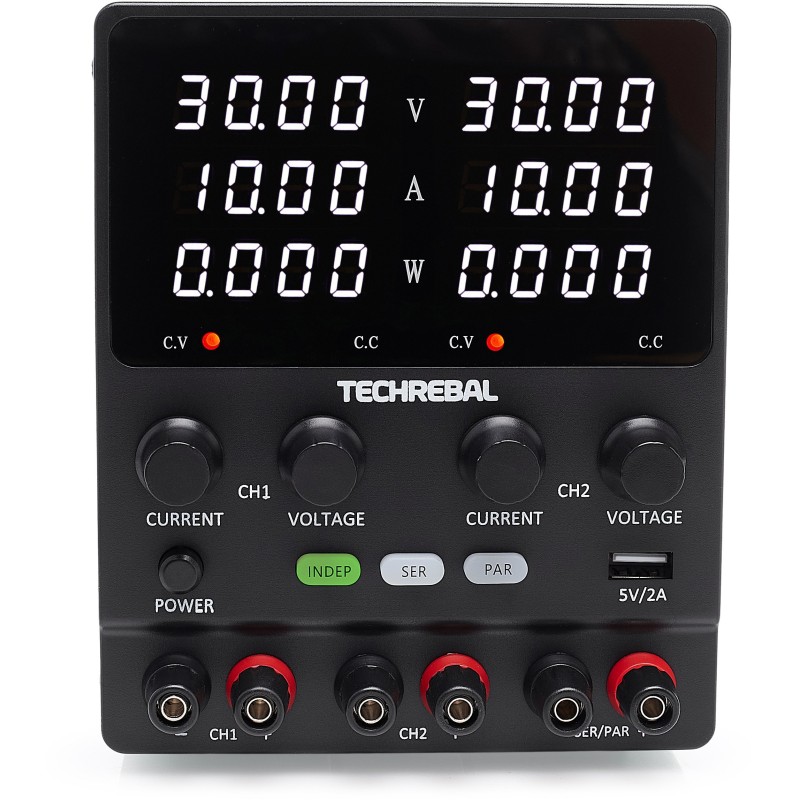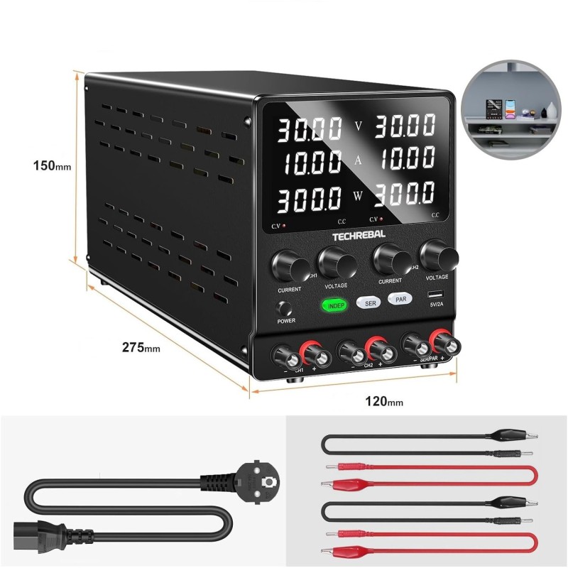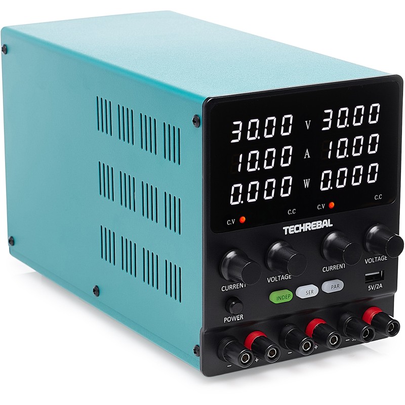 Das zweikanalige Labornetzteil Techrebal SPS-3010-2KD ist ein äußerst vielseitiges Gerät, das sich hervorragend für Elektronikwerkstätten, Heimwerkstätten und Forschungsarbeiten eignet. Es bietet eine präzise einstellbare Ausgangsspannung im Bereich von 0 bis 30 V sowie einen maximalen Ausgangsstrom von 10 A, was es zum idealen Werkzeug für vielfältige Anwendungen macht.