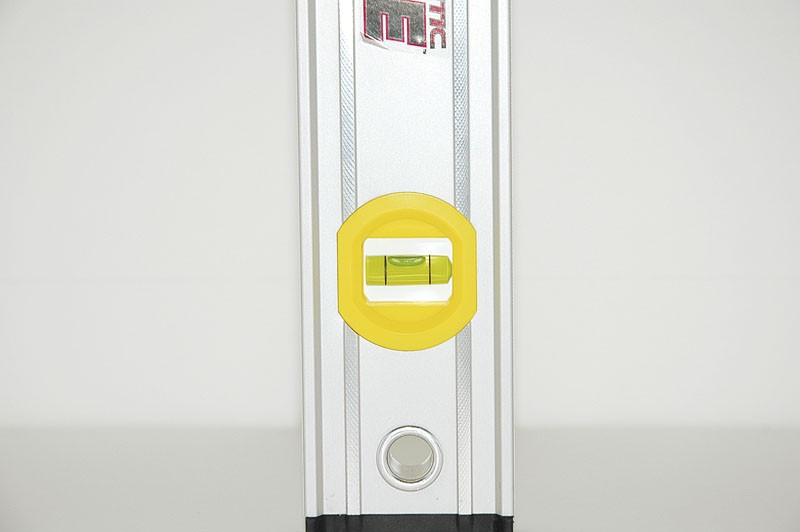 • Stoßdämpfende Kunststoffkappen an den Enden der Wasserwaage