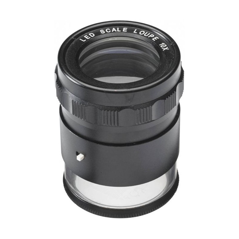 Messlupe mit Skala und LED-Beleuchtung. Ring zur Fokuseinstellung. 16780-0101 Mit Längenskala. 16780-0200 Mit Längen-, Winkel- und Radiusskala. Im Lieferumfang enthalten sind 4 Batterien 1,5 V AG9.