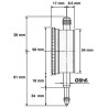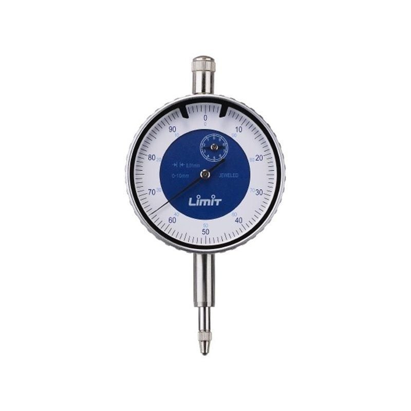 Drehbare Skalenscheibe mit zwei einstellbaren Toleranzfeldanzeigern. Zusätzlicher Zeiger für volle Millimeter. Gehäuse aus robustem Aluminium. Austauschbare Messspitze. Ohne Befestigungsöse.
