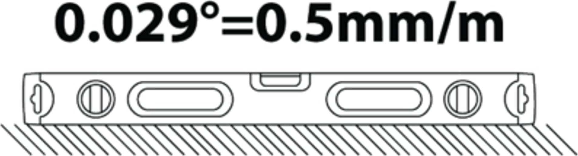 • 0,5 mm/m Genauigkeit in Normalstellung. 0,75 mm/m in umgekehrter Position