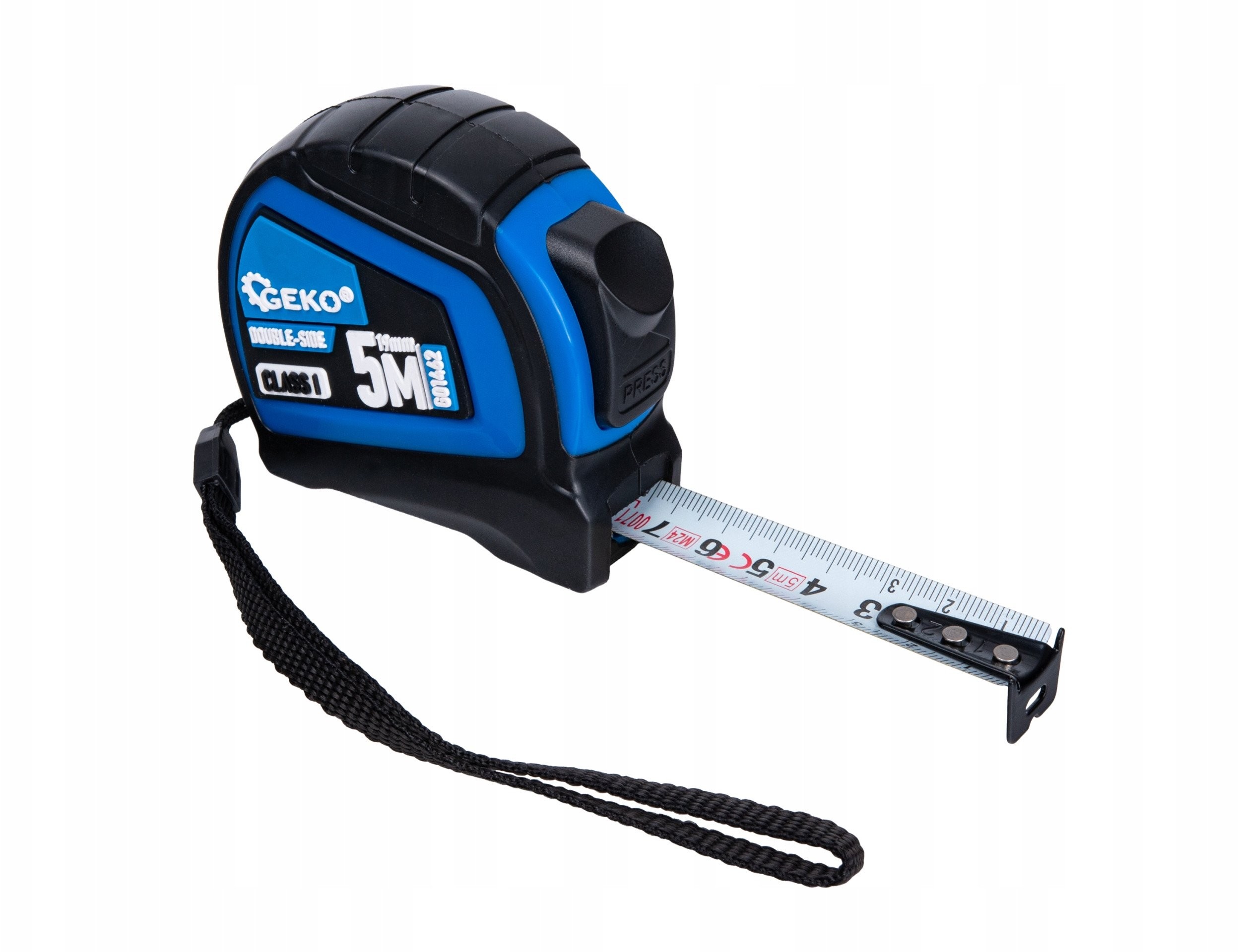 Doppelseitiges Nylon-Rollmaßband mit Automatikmechanismus, 5 m/19 mm, KLASSE I – Displaykarton (12/120)