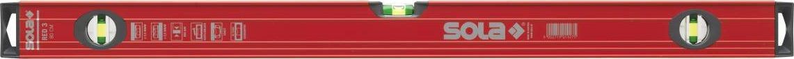 Eine professionelle Wasserwaage aus der RED 3-Serie des österreichischen Unternehmens Sola – einem der weltweit führenden Hersteller von Messwerkzeugen. Es handelt sich um ein präzises, hochwertiges Werkzeug, das für den professionellen Einsatz empfohlen wird und die Erwartungen anspruchsvoller Anwender erfüllt. Die RED 3-Serie wird für allgemeine Bauarbeiten, Montagearbeiten, Sanitärarbeiten usw. empfohlen. Sie zeichnet sich durch ein außergewöhnlich stabiles Profil aus. Sie verfügt über 3 Libellen, 2 zur Vertikalmessung und eine zur Horizontalmessung.