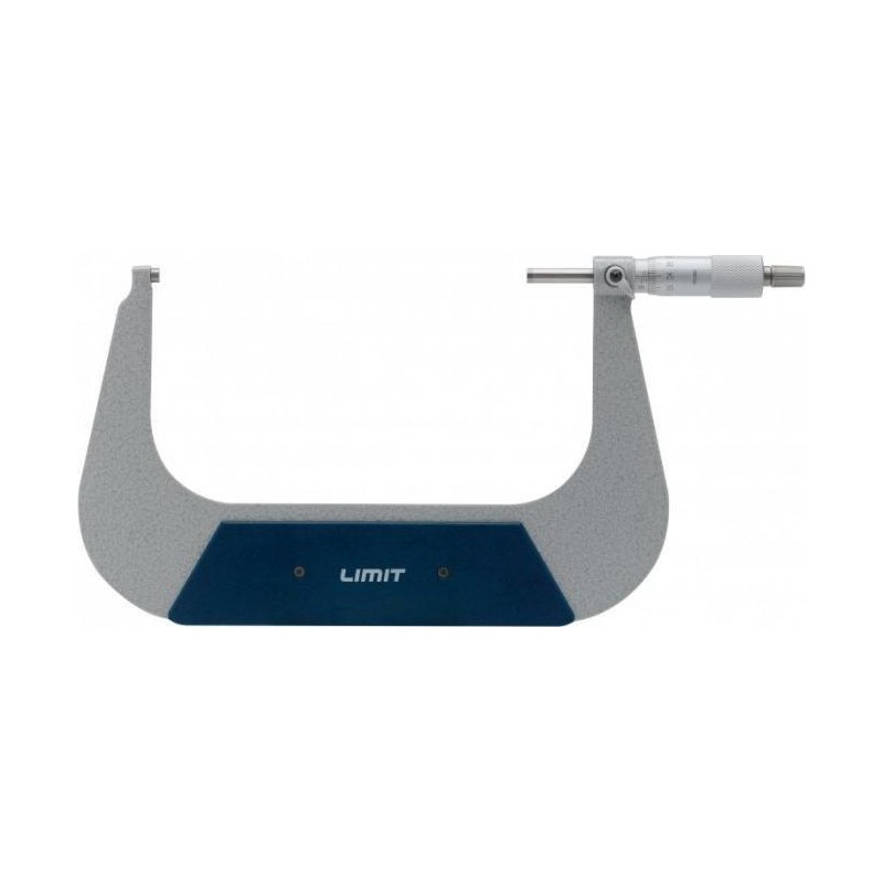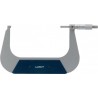 Mikrometer mit lackiertem Stahlbügel und mattverchromter Skala. Gehärtete Spindel mit einem Durchmesser von 6,5 mm und präzise geläppten Messflächen aus Hartmetall. Reibungskupplung und Feststellhebel. Ausführung gemäß DIN 863....