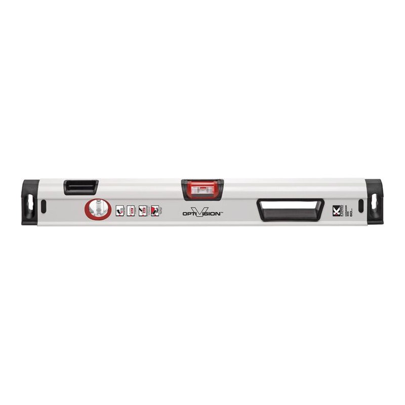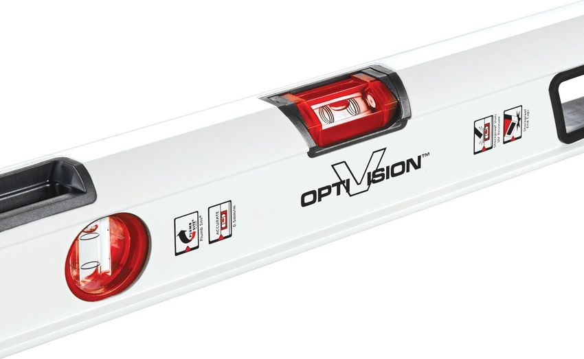 • Die horizontale OPTIVISION™ Red-Libelle erzeugt gut sichtbare rote Blasenränder, die eine genaue Ausrichtung zwischen den Markierungslinien und optimale Sichtbarkeit sowohl bei starkem als auch bei schwachem Licht gewährleisten