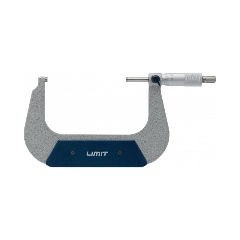 Mikrometer mit lackiertem Stahlbügel und mattverchromter Skala. Gehärtete Spindel mit einem Durchmesser von 6,5 mm und präzise geläppten Messflächen aus Hartmetall. Reibungskupplung und Feststellhebel. Ausführung gemäß DIN 863....