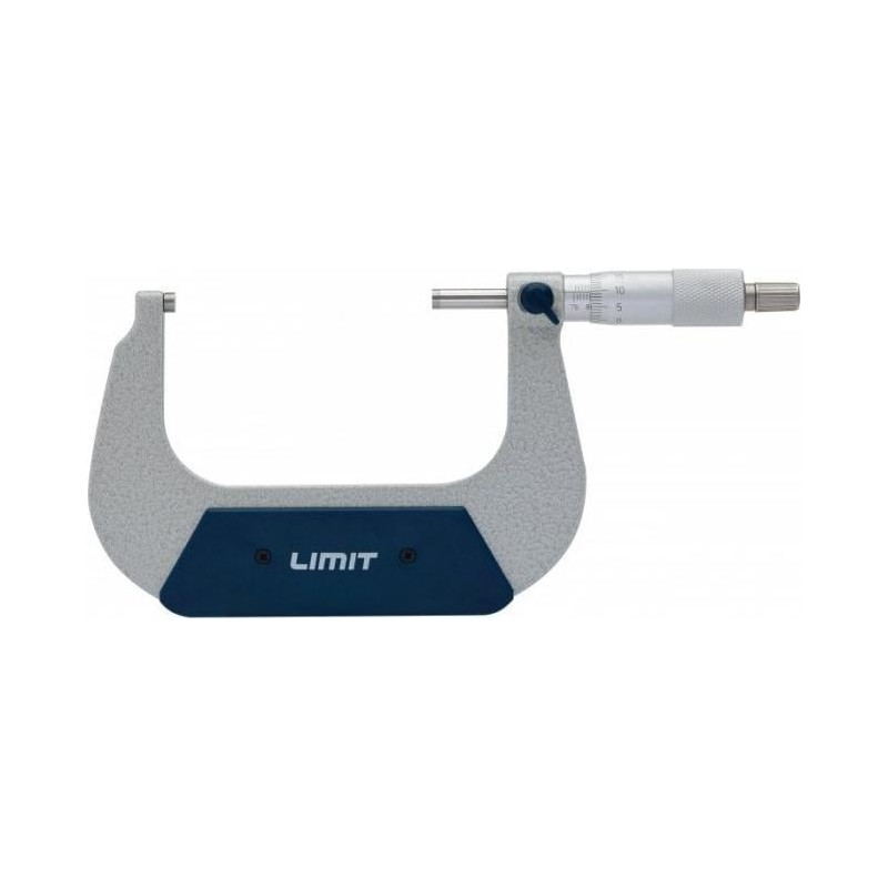 Mikrometer mit geschmiedetem Bügel und mattverchromter Skala, bestimmt für Außenmessungen. Gehärtete Spindel mit einem Durchmesser von 6,5 mm und präzise geläppten Messflächen aus Hartmetall. Mit Hülse mit Reibungskupplung und Feststellhebel. Ausführung gemäß DIN 863....