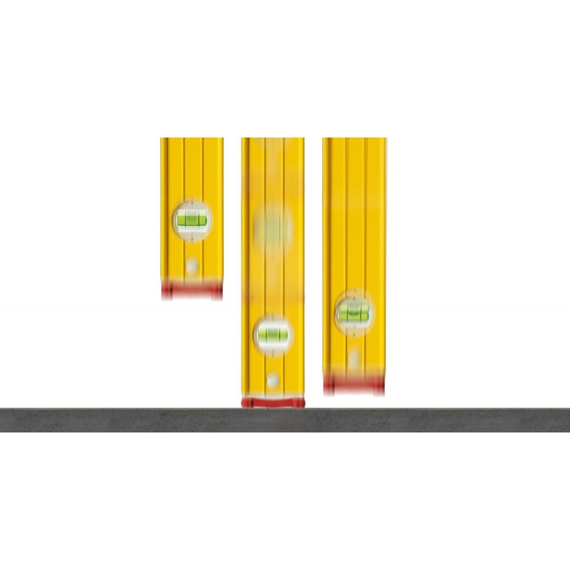 Auf der Baustelle wird die Wasserwaage stark beansprucht, und es kann oft vorkommen, dass sie herunterfällt. Umso wichtiger ist es, dass sie auch bei täglicher Beanspruchung noch genauso genau misst wie am ersten Tag. Zwei vertikale Libellen ermöglichen das Ablesen in jeder Position. Darüber hinaus sorgen zwei Durchgriffgriffe für einen sicheren Halt. Das robuste, verstärkte Aluminium-Rechteckprofil und die STABILA-Montagetechnologie mit fest eingegossener Libelle machen dieses Gerät zum perfekten Partner für anspruchsvolle Bauaufgaben. Wasserwaagen von STABILA: Präzision auf Lebenszeit.