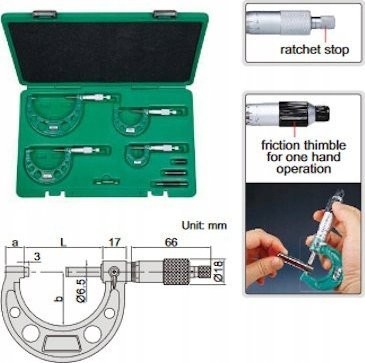 Insize Mikrometer-Set 0–150 /6-teilig/ Reibungskupplung
