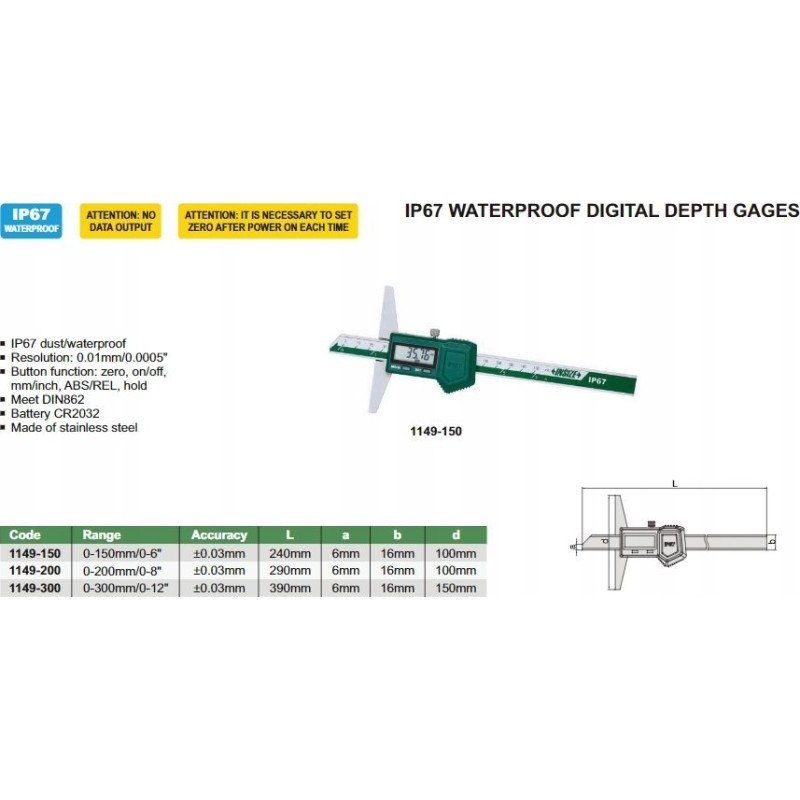 Insize elektronischer Tiefenmesser, wasserdicht nach IP67