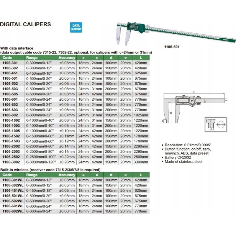 Insize Messschieber 300 Digital 12 3V/ABS/Datum Backen 100 1-seitig