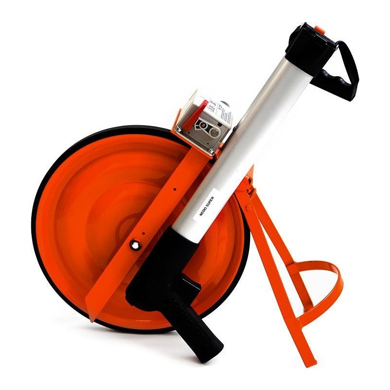 Das Messrad der deutschen Firma NEDO SUPER 702 111 erfüllt höchste Anforderungen an Präzision, Qualität und Zuverlässigkeit. Die Messgenauigkeit beträgt bis zu ±0,02 %, was einem Fehler von ±2 cm auf einer Strecke von 100 m entspricht. Der Zähler zeigt Werte in Zentimetern an und ist sehr stoßfest. Er wird über einen Hebel am Gehäuse des Zählers auf Null zurückgesetzt. Ein Stahlfuß arretiert ihn und hält ihn in aufrechter Position. Der Entfernungsmesser lässt sich innerhalb weniger Sekunden auf eine kleinere Größe zusammenklappen. Technische Daten Radumfang: 1 m Messbereich: 0–9999,90 m Genauigkeit: +/- 0,02 % Teilstrich: 0,01 m Gewicht: ca. 3,65 kg Fragen Sie nach größeren Mengen unter Tel. 32 428 11 32
