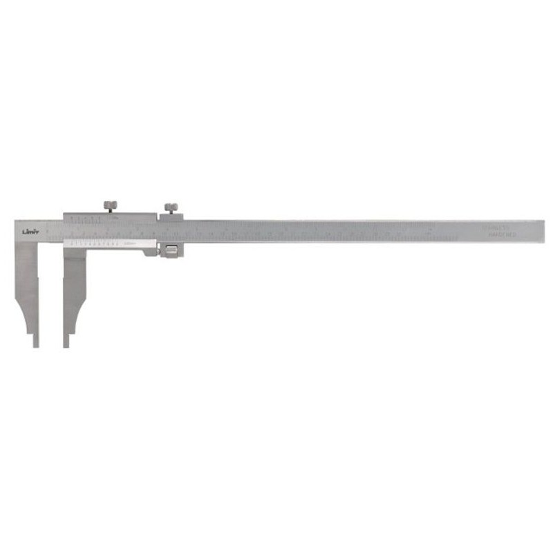 Gehärtet. Matt verchromte Skala. Mit Aussparungen an den Backen für Innenmessungen. Toleranz nach DIN 862. Nonius-Teilung 0,05 mm