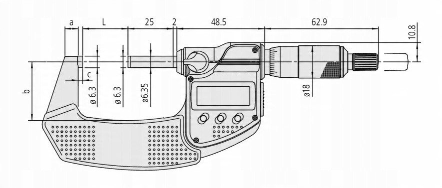 Die Messspitzen des Mikrometers bestehen aus Hartmetall, was für außergewöhnliche Langlebigkeit und Messgenauigkeit sorgt. Dadurch ist das Mikrometer selbst für anspruchsvollste Messaufgaben geeignet.
