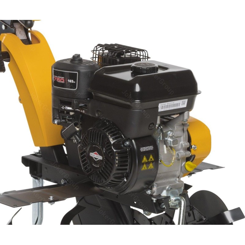 Motortyp: Verbrennungsmotor, Viertakt, Überkopfventil. Motorhersteller: Briggs & Stratton. Motormodell: CR950. Hubraum: 208 cm³. Nennleistung: 3,96 kW. Maximale Arbeitsbreite: 75 cm. Maximale Arbeitstiefe: 26 cm. Anzahl der Arbeitssterne: 6 (3+3). Anzahl der Mähmesser: 24. Vorwärtsgang: ja. Rückwärtsgang: ja. Seitliche Pflanzenschutzscheiben: ja. Anzahl der Stützräder: 1 vorne.