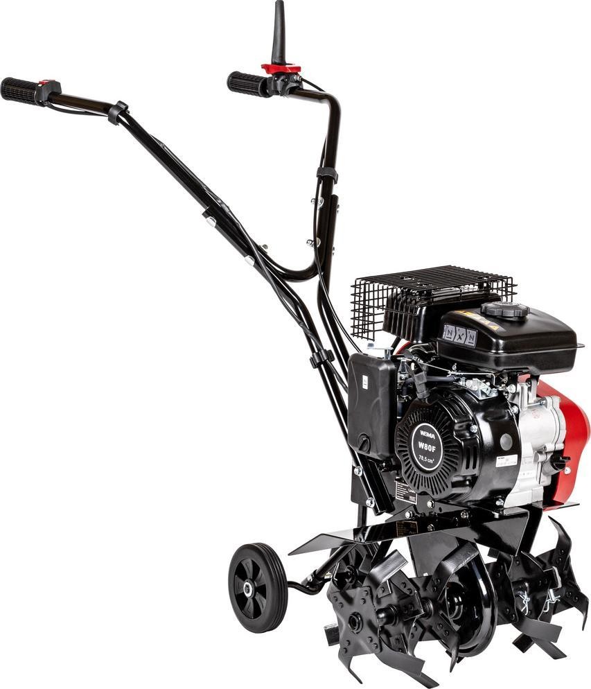 Der Motorhacke Cedrus GL08 / GL450 mit einem 2,3-PS-Motor von WEIMA ist eine der kleinsten Motorhacken mit Verbrennungsmotor, die für den Einsatz im Hausgarten auf einer Fläche von bis zu 600 m² konzipiert ist. Dank ihrer geringen Arbeitsbreite kann sie in engen Reihen und an schwer zugänglichen Stellen eingesetzt werden. Der verstellbare Griff und die intuitive Steuerung machen die Arbeit mit diesem Motorhacke einfach und komfortabel. Der leistungsstarke Motor und die Arbeitsmesser aus hochwertigem Stahl garantieren eine lange und problemlose Nutzung des Cedrus-Motorhackers. Dank der im Lieferumfang enthaltenen Transporträder lässt sich unser Motorhacker leicht und mühelos transportieren.