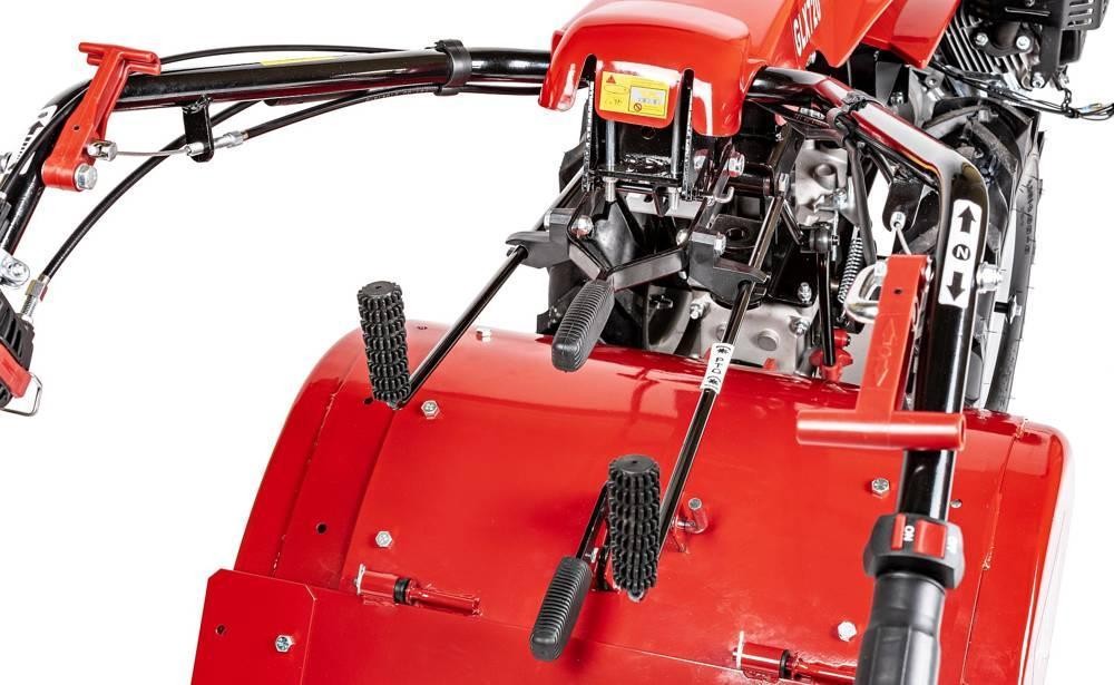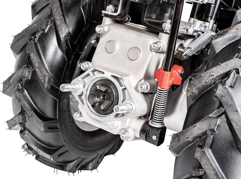 • RADANTRIEB – Er sorgt dafür, dass die Maschine nicht ruckelt, dämpft die von den Arbeitsmessern übertragenen Kräfte perfekt, verringert den Kraftaufwand bei der Arbeit und ermöglicht eine gründliche Bodenlockerung bereits beim ersten Arbeitsdurchgang.