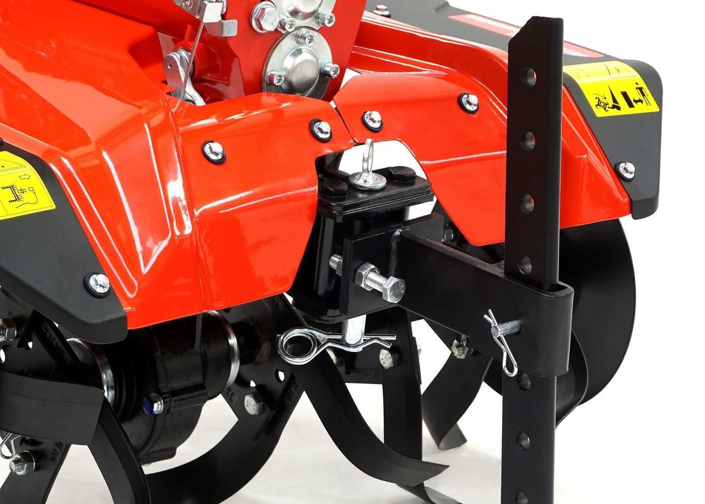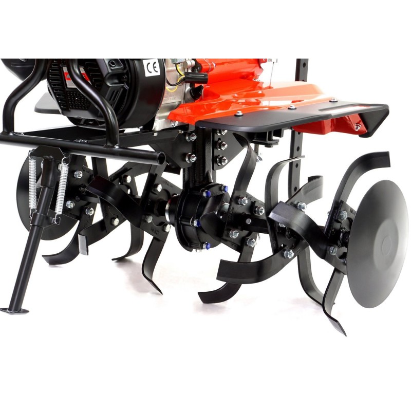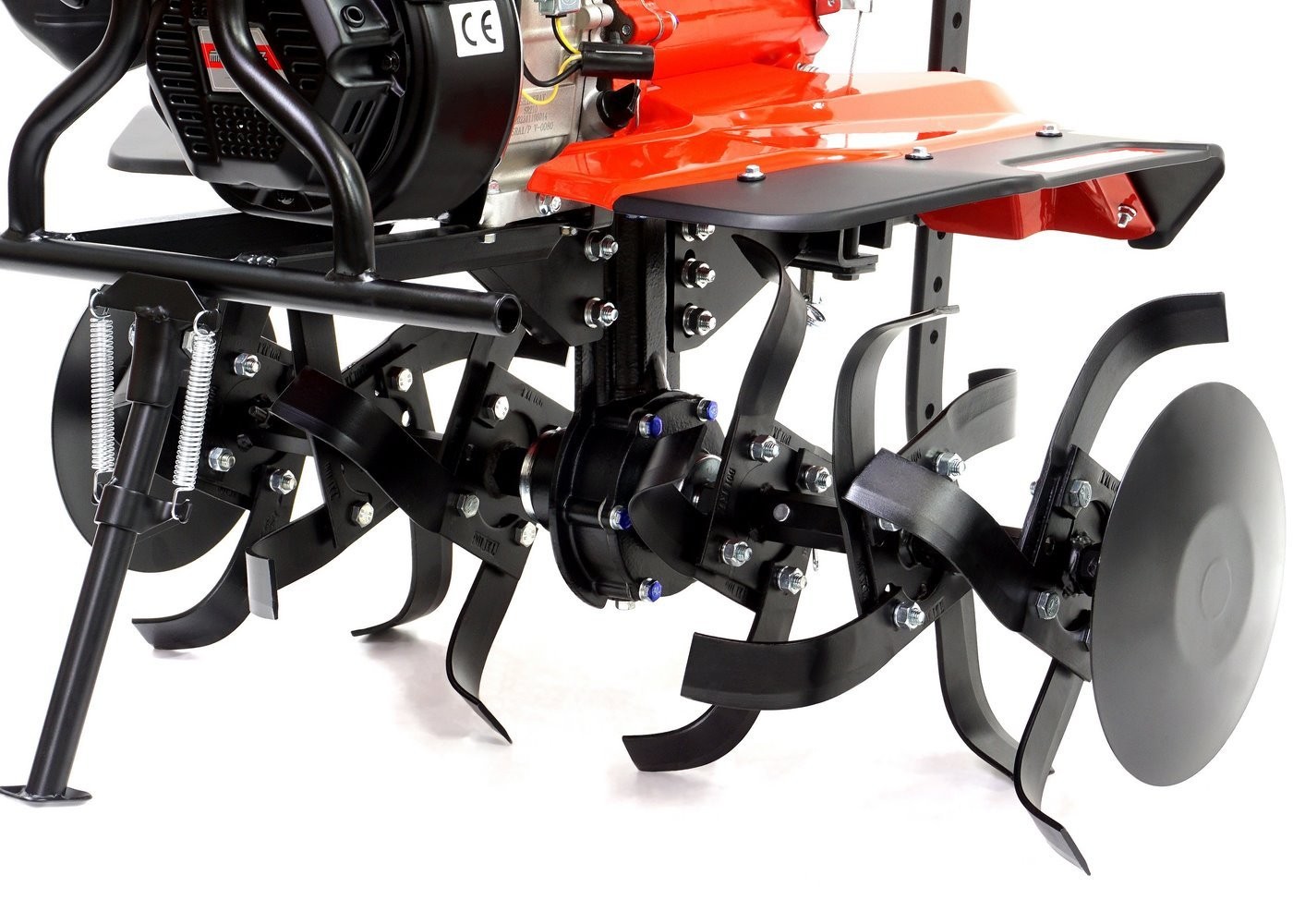 Motortyp: Verbrennungsmotor, Viertakt, obenliegende Ventile. Motorhersteller: HORTMASZ. Motormodell: 212. Hubraum: 212 cm³. Maximale Motorleistung: 7,0 PS. Getriebetyp: Zahnradgetriebe. Maximale Arbeitsbreite: 100 cm. Maximale Arbeitstiefe: 30 cm. Anzahl der Arbeitssterne: 6 (3+3). Anzahl der Jätmesser: 24. Vorwärtsgang: ja, 2 Gänge. Rückwärtsgang: ja. Seitliche Pflanzenschutzscheiben: ja. Anzahl der Stützräder: nein. Im Lieferumfang enthalten: Gummiräder.