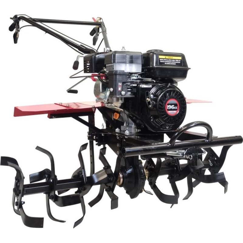 Ein benzinbetriebenes Gerät zur Pflege von Gärten, Grundstücken und Ackerflächen. Dieses Gerät ist für Feldarbeiten vorgesehen. Mit dieser Maschine lässt sich der Boden auflockern. Mit Hilfe von Zusatzgeräten kann er für den Anbau vorbereitet werden.