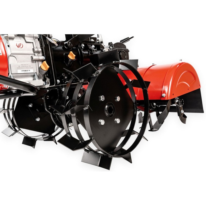 Das Herzstück des Motorhackers ist ein leistungsstarker WEIMA-Motor mit 5,5 PS, der hohe Leistung und Zuverlässigkeit gewährleistet. Dank Rückwärtsgang und einstellbarer Arbeitstiefe wird die Bodenbearbeitung schnell und komfortabel, was dieses Modell ideal für die regelmäßige Bodenpflege macht.