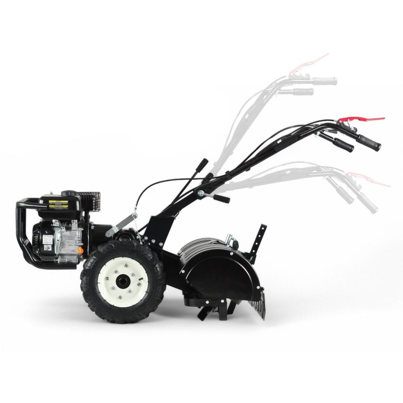 Ausgestattet mit einem Verbrennungsmotor bietet der Motorhacke HGS ST360 R212 hervorragende Mobilität und Leistung. Die Gummiräder mit einem Durchmesser von 40 cm erleichtern das Manövrieren, was besonders bei Arbeiten auf unebenem Gelände wichtig ist.