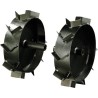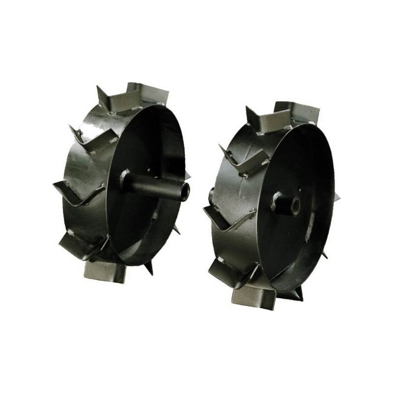 Metallräder für Bodenfräse, Achse 26 mm, Durchmesser 440 mm – Satz Metallräder. Werden direkt am Getriebe befestigt (Abnahme der Abdeckungen erforderlich). Einsatzbereich: Pflügen, Jäten, Mulchgerät (Typ Triunfo) Achse 26 mm, Durchmesser 440 mm. Passend für: S48, S50, S60 PTT