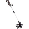 Das Gerät wiegt nur 4,8 kg (ohne Akku), wodurch es leicht und einfach zu handhaben ist. Dank seiner kompakten Abmessungen lässt sich der Kultivator leicht verstauen, was bei begrenztem Platz im Garten oder in der Garage von Bedeutung ist.