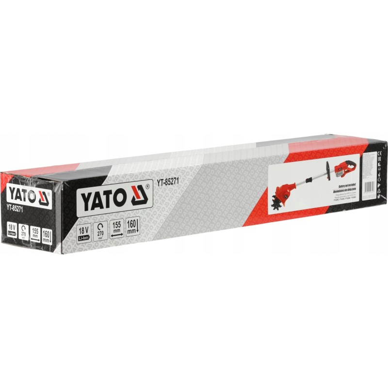 Das Gerät wird mit einem Akku betrieben, der für die Elektrowerkzeugserie des YATO 18-V-Systems geeignet ist. Für den Motorhacke sind Akkus mit einer Kapazität von 2 Ah, 3 Ah und 4 Ah geeignet.