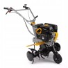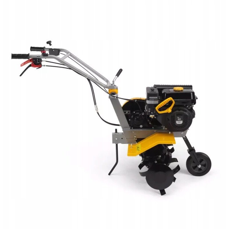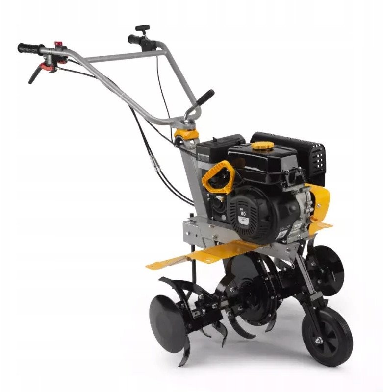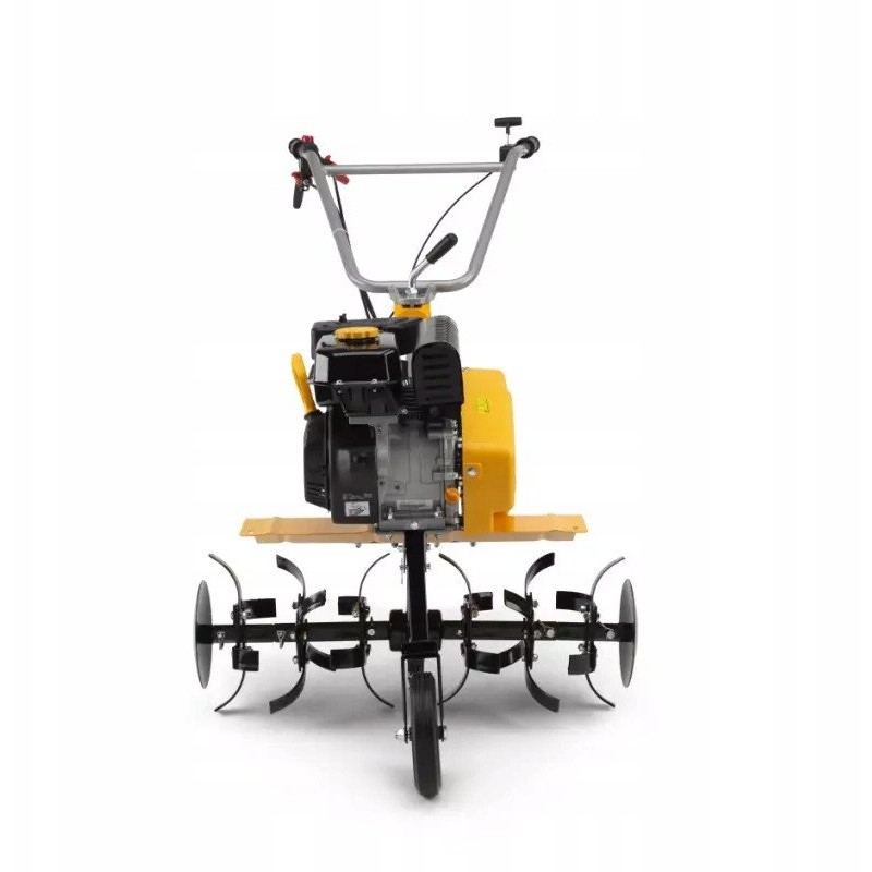 Das Gerät ist mit einem Kettengetriebe ausgestattet und verfügt über zwei Gänge: einen Vorwärts- und einen Rückwärtsgang, was seine Vielseitigkeit erhöht und das Manövrieren erleichtert. Zusätzlich verfügt der Motorhacke über Schutzscheiben, was die Sicherheit bei der Arbeit erhöht.