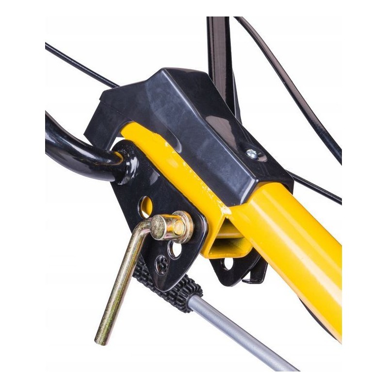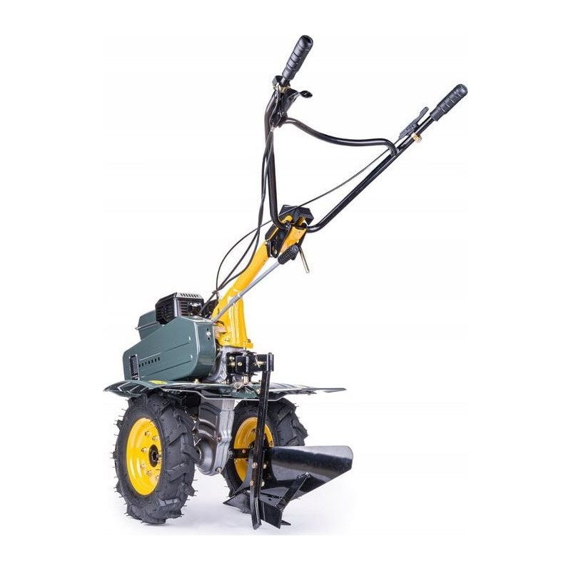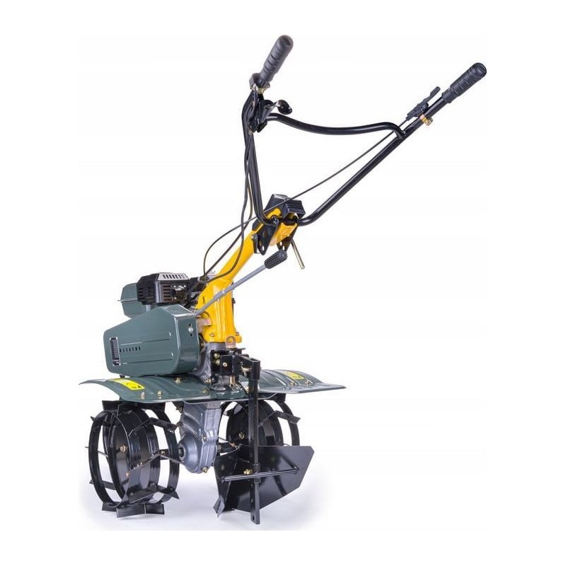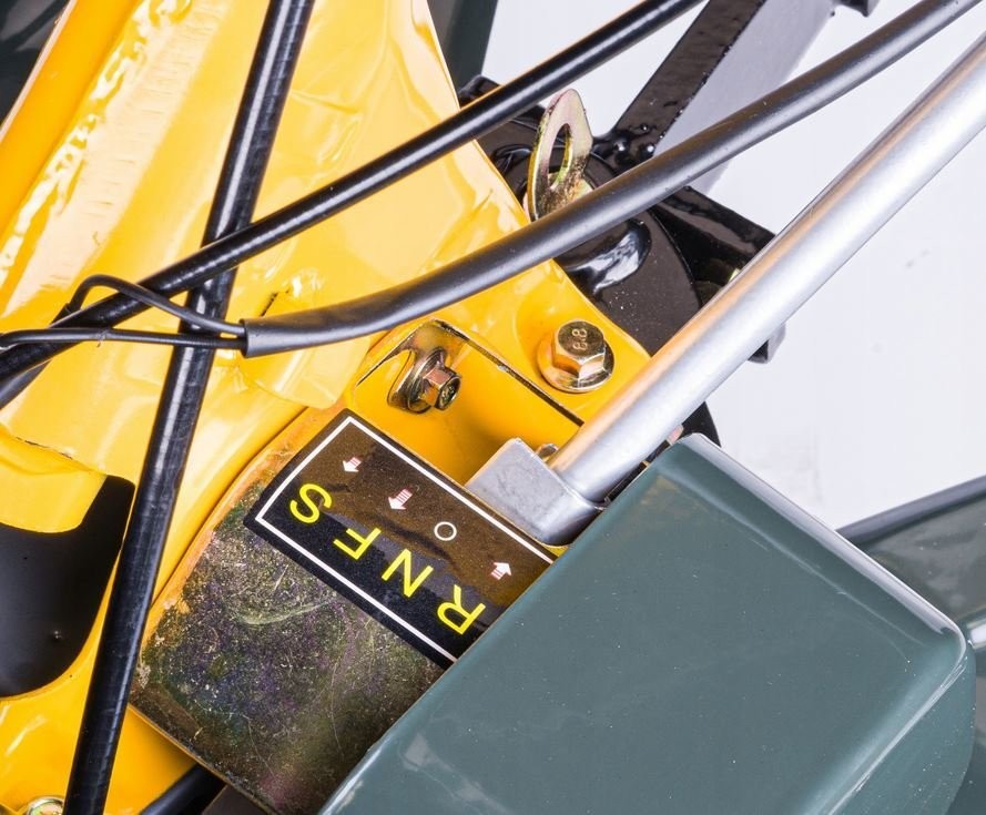 • Der Motorhacke verfügt über ein Transportrad, das das Bewegen erleichtert, sowie über eine höhenverstellbare Steuerhebel, mit der die Höhe an die Körpergröße des Benutzers angepasst werden kann