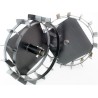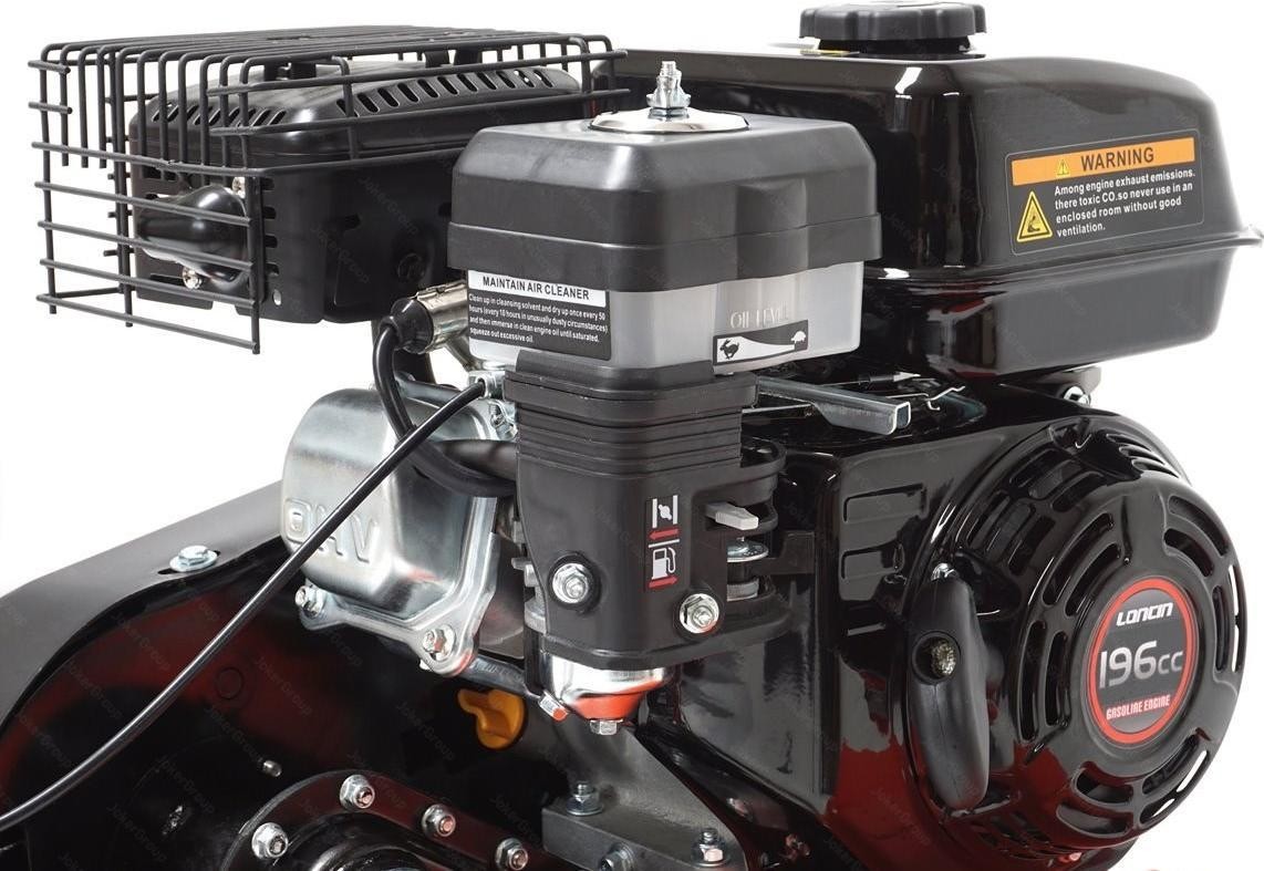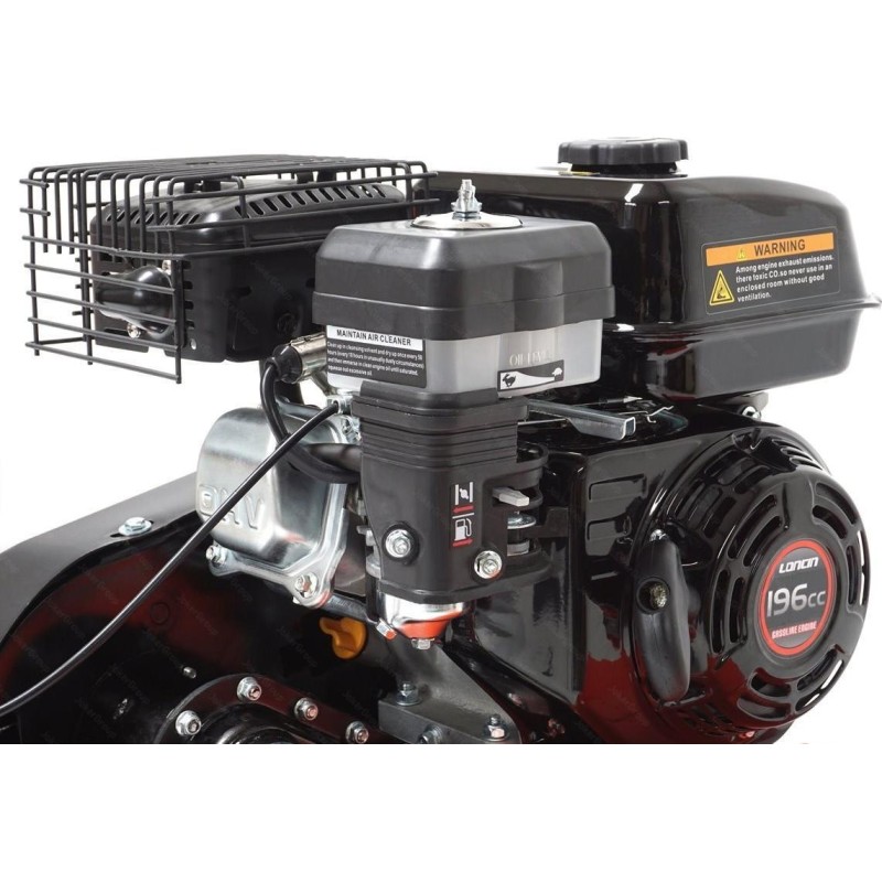 Motortyp: Verbrennungsmotor, Viertakt, obenliegende Ventile. Motorhersteller: LONCIN. Motormodell: G200F. Hubraum: 196 cm³. Maximale Motorleistung: 6,5 PS. Maximale Arbeitsbreite: 90 cm. Maximale Arbeitstiefe: 31 cm. Anzahl der Arbeitssterne: 6 (3+3). Anzahl der Mähmesser: 24. Vorwärtsgang: ja. Rückwärtsgang: ja. Seitliche Pflanzenschutzscheiben: ja. Anzahl der Stützräder: 2 hinten. Lieferumfang: Gummiräder, Metallräder, Streuer, Pflug, Ausreißer, Motoröl.