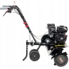 Der Motorhacke verfügt über große hintere Transporträder, die das Führen der Maschine unter schwierigen Bedingungen erleichtern.