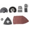 Im Lieferumfang enthalten: Dreieckschleifplatte, Schleifpapier, Segment- und Tauchsägeblätter für Verbindungen in Holz, Kunststoffen, Weichmetall und Fliesen.