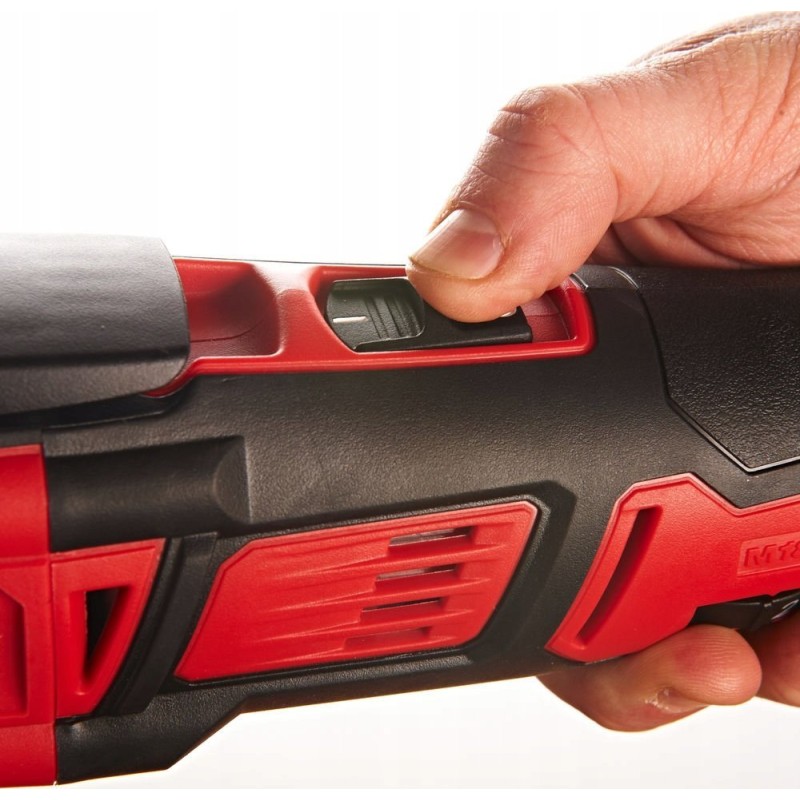 • 12-stufige Drehzahlregelung (12.000 – 18.000 U/min) und 3,4°-Oszillationsbewegung in verschiedenen Materialien (Metall / Kunststoff / Holz)
