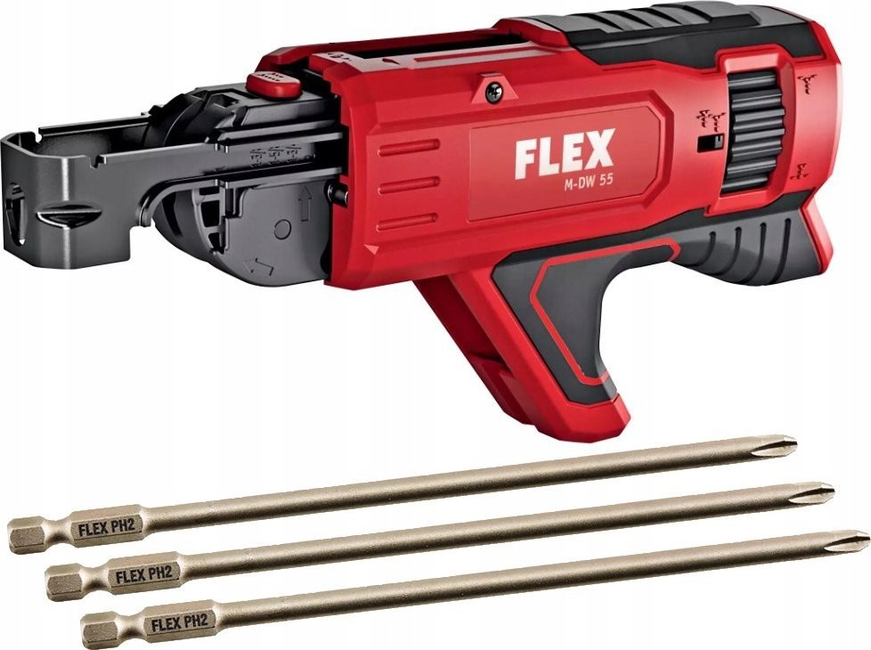 Um 360° drehbare Magazinhalterung, guter Zugang zu Ecken, werkzeuglose Einstellung der Einschraubtiefe über Drehknopf, werkzeuglos einstellbarer Tiefenanschlag zur Anpassung an verschiedene Schraubenlängen von 25–55 mm, max. Kerndurchmesser 4,2 mm.