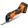 Leistungsstarkes Akku-Multitool für schnellen Arbeitsfortschritt bei Bau- und Renovierungsarbeiten mit über 30 Zubehörteilen – zum Sägen in Holz und Metall, Schleifen, Fliesenschneiden und für weitere Aufgaben.